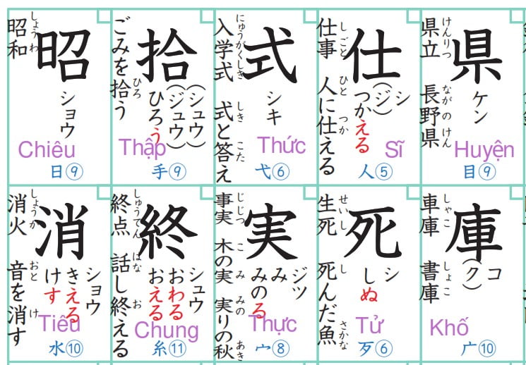 200 chữ Kanji (chi tiết có cả cách sử dụng, cách đọc) mà học sinh tiểu học Nhật Bản cần phải nắm vững.