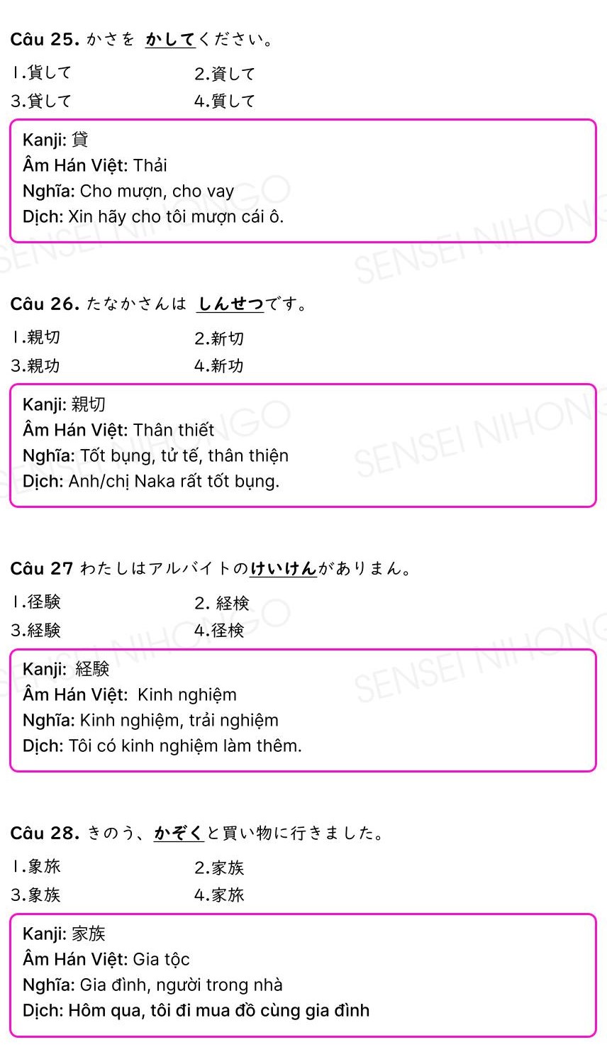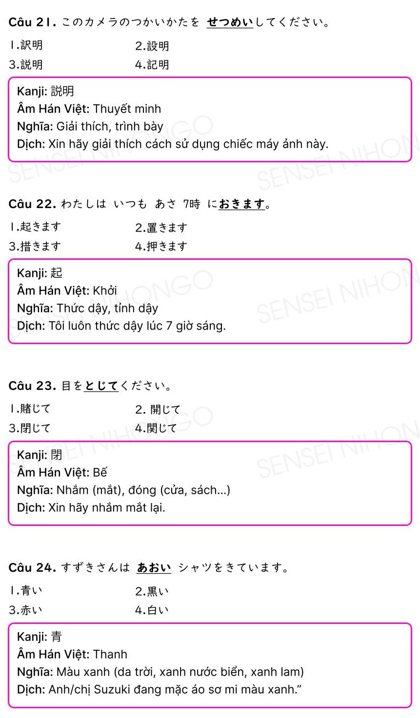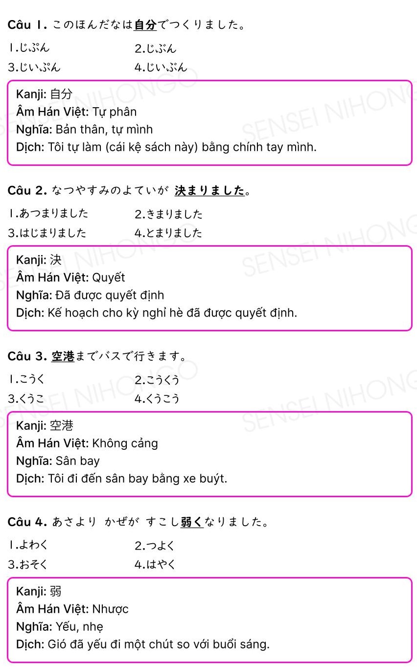 Đáp án và giải thích bài kiểm tra thực hành tiếng Nhật N5 – N4 PDF