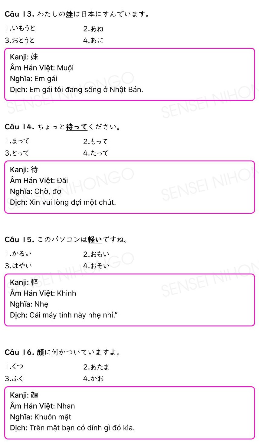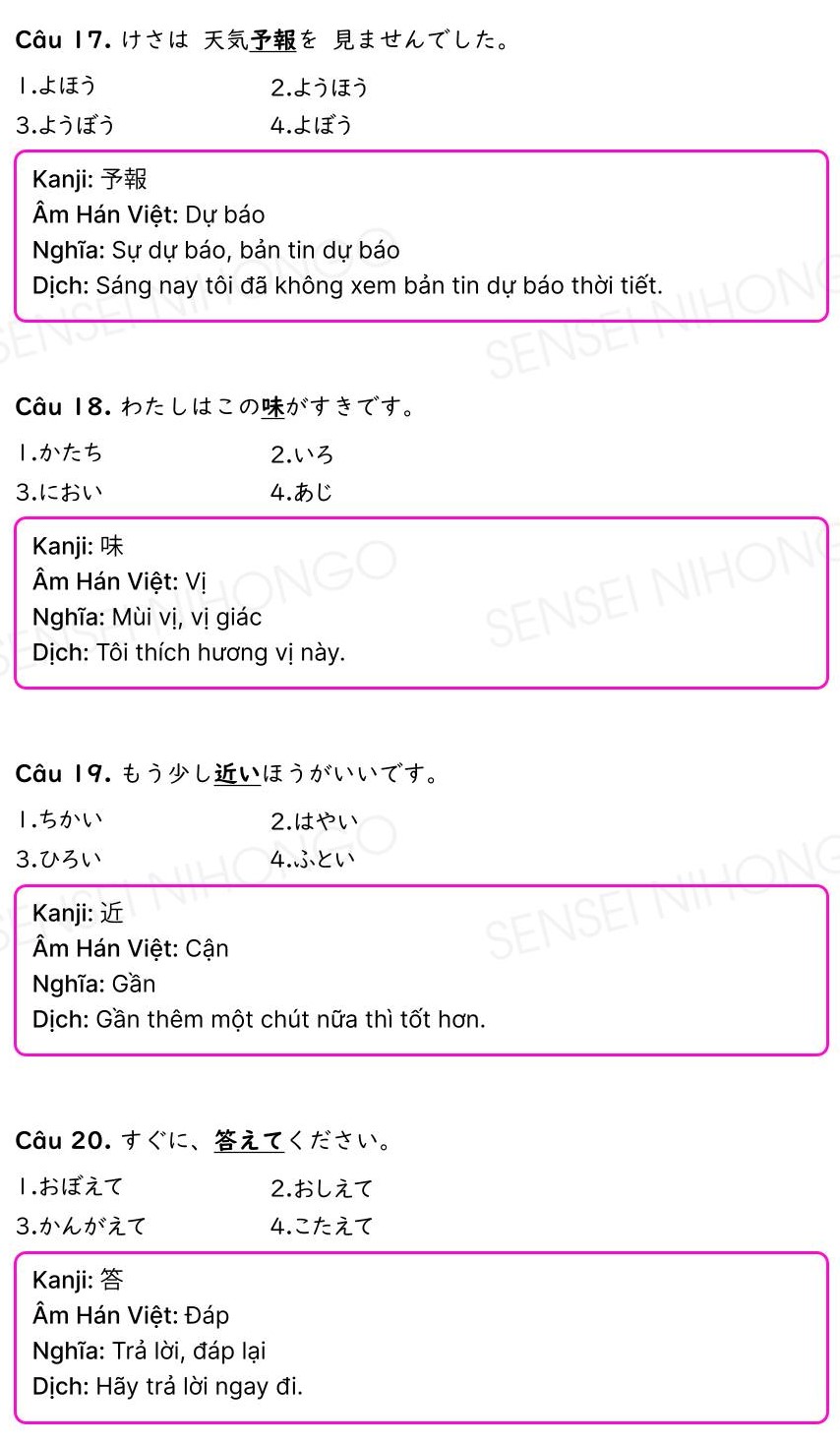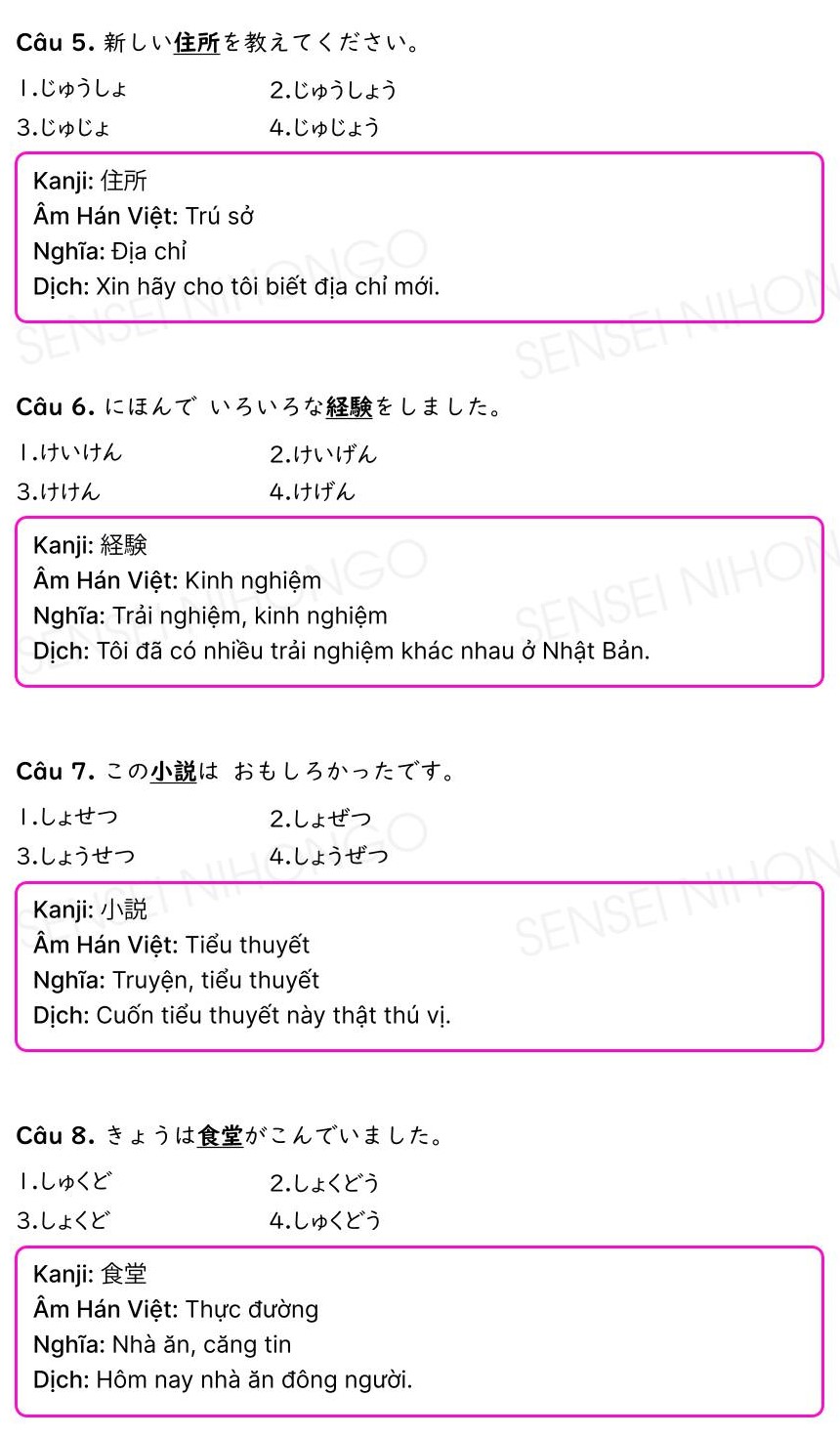 Đáp án và giải thích bài kiểm tra thực hành tiếng Nhật N5 – N4 PDF
