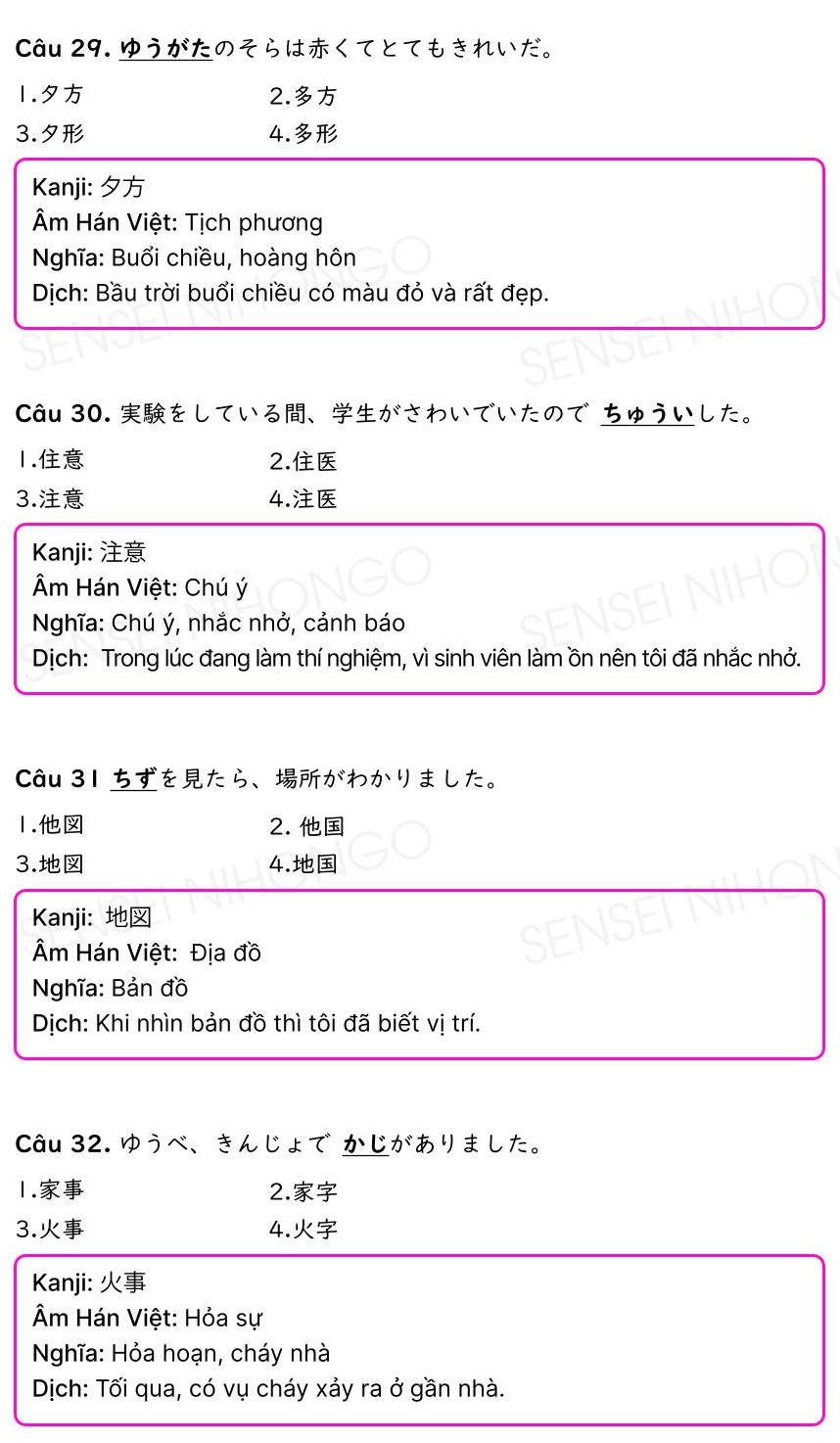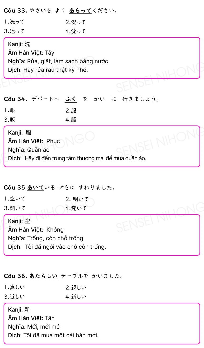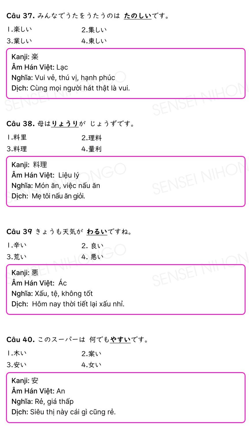 40 Câu Kanji N4 có đáp án