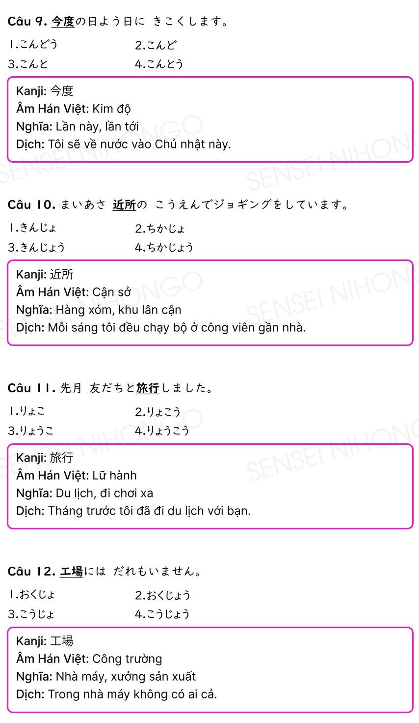 510 Câu bài tập Kanji N4 có đáp án