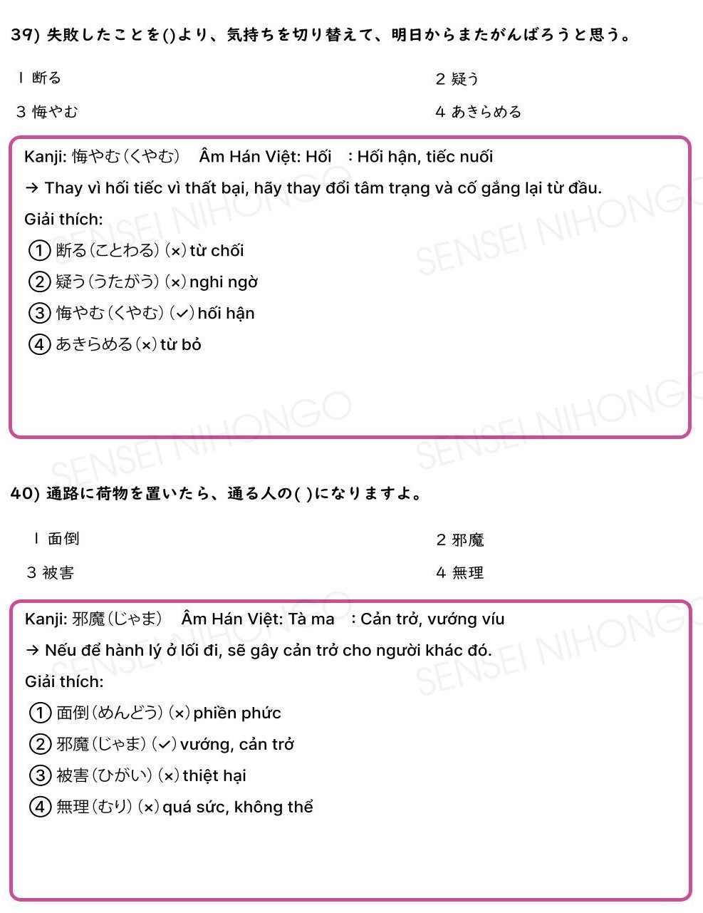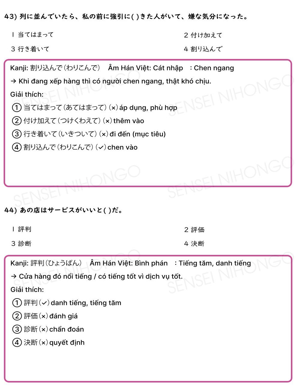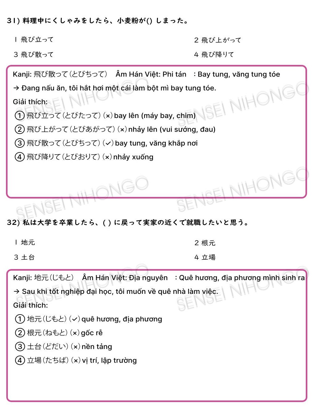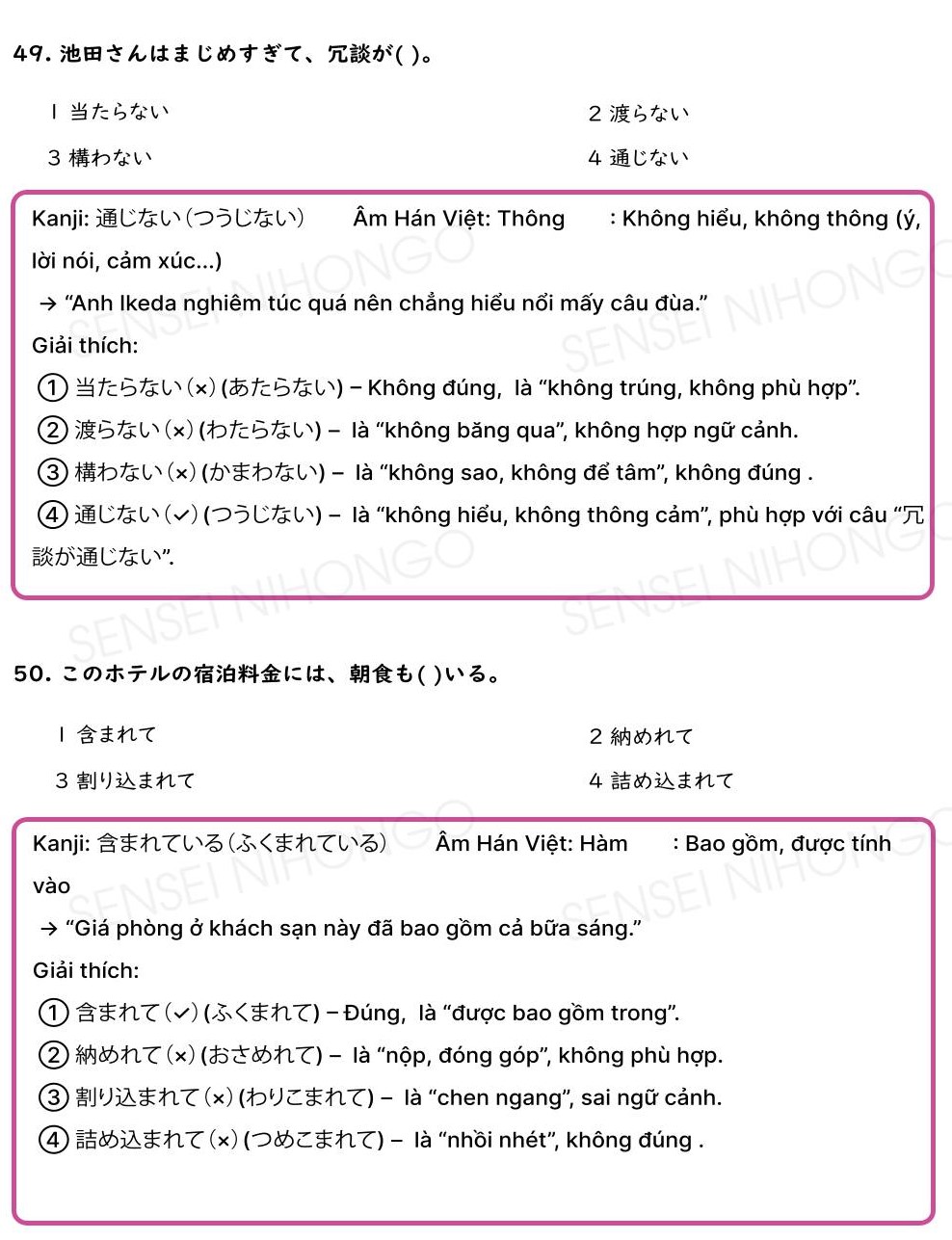 50 Câu bài tập Từ Vựng N2: Phần 1 (Có hướng dẫn giải và đáp án)