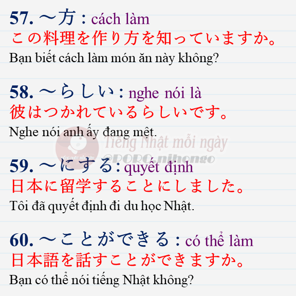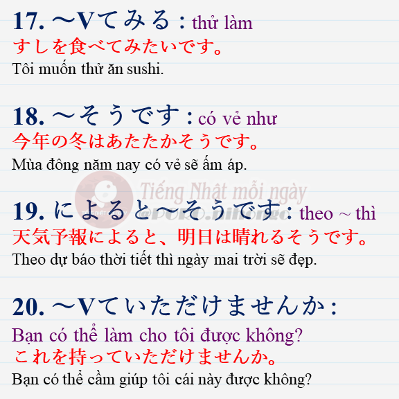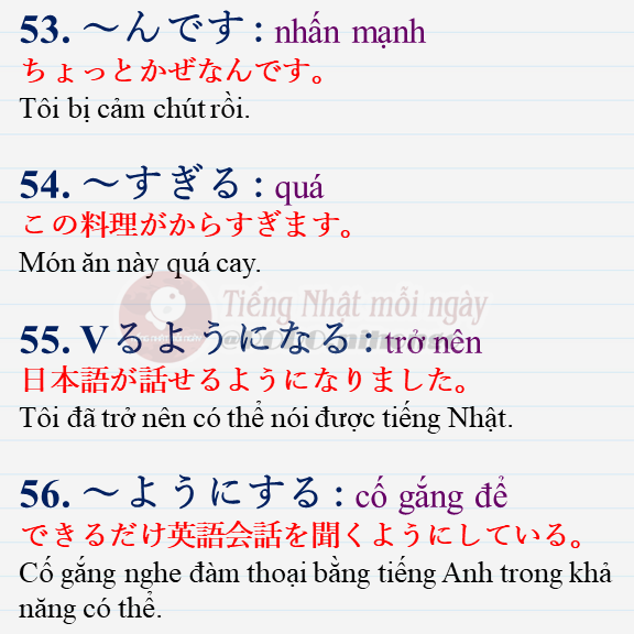 Cùng học những ngữ pháp tiếng Nhật N4 quan trọng cho kỳ thi JLPT N4.