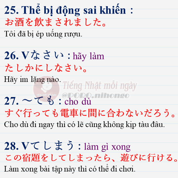 Ngữ Pháp N4 cần Nhớ