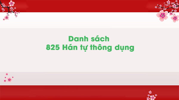 Tài gồm danh sách 825 Hán tự thông dụng.
