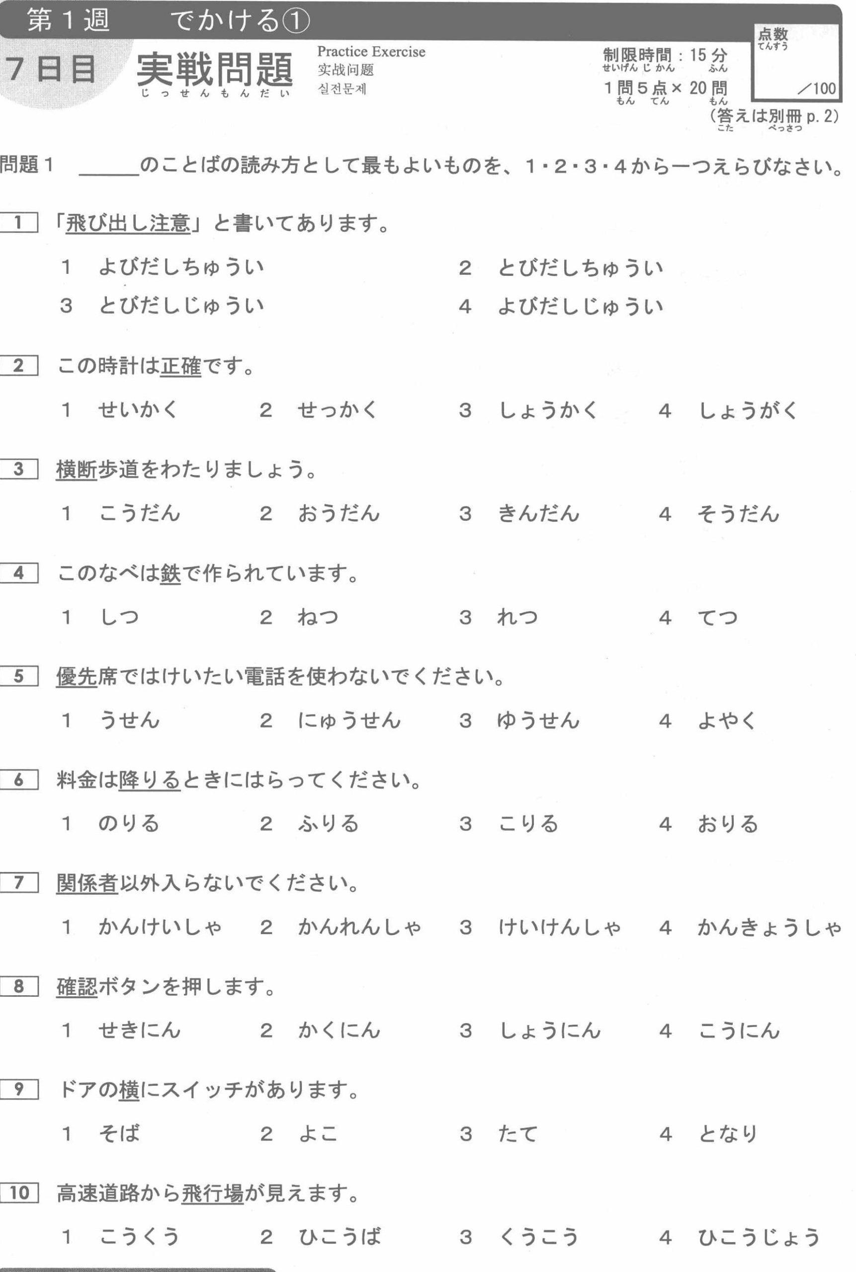 Bài tập Kanji N3: Phần 1 (Có đáp án)