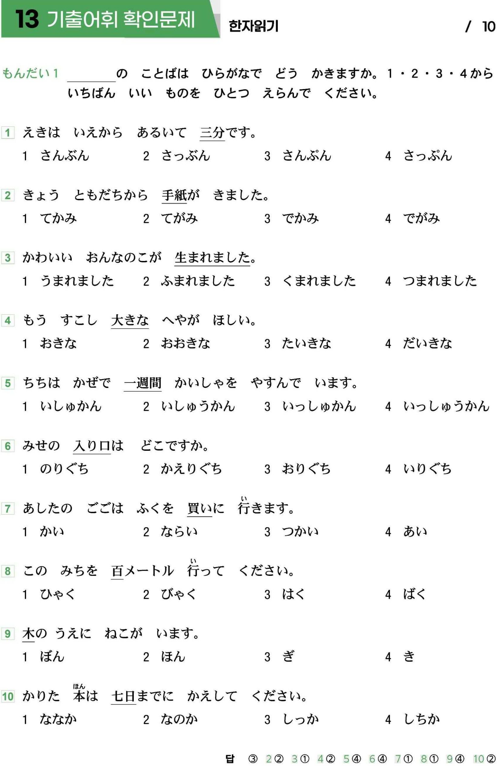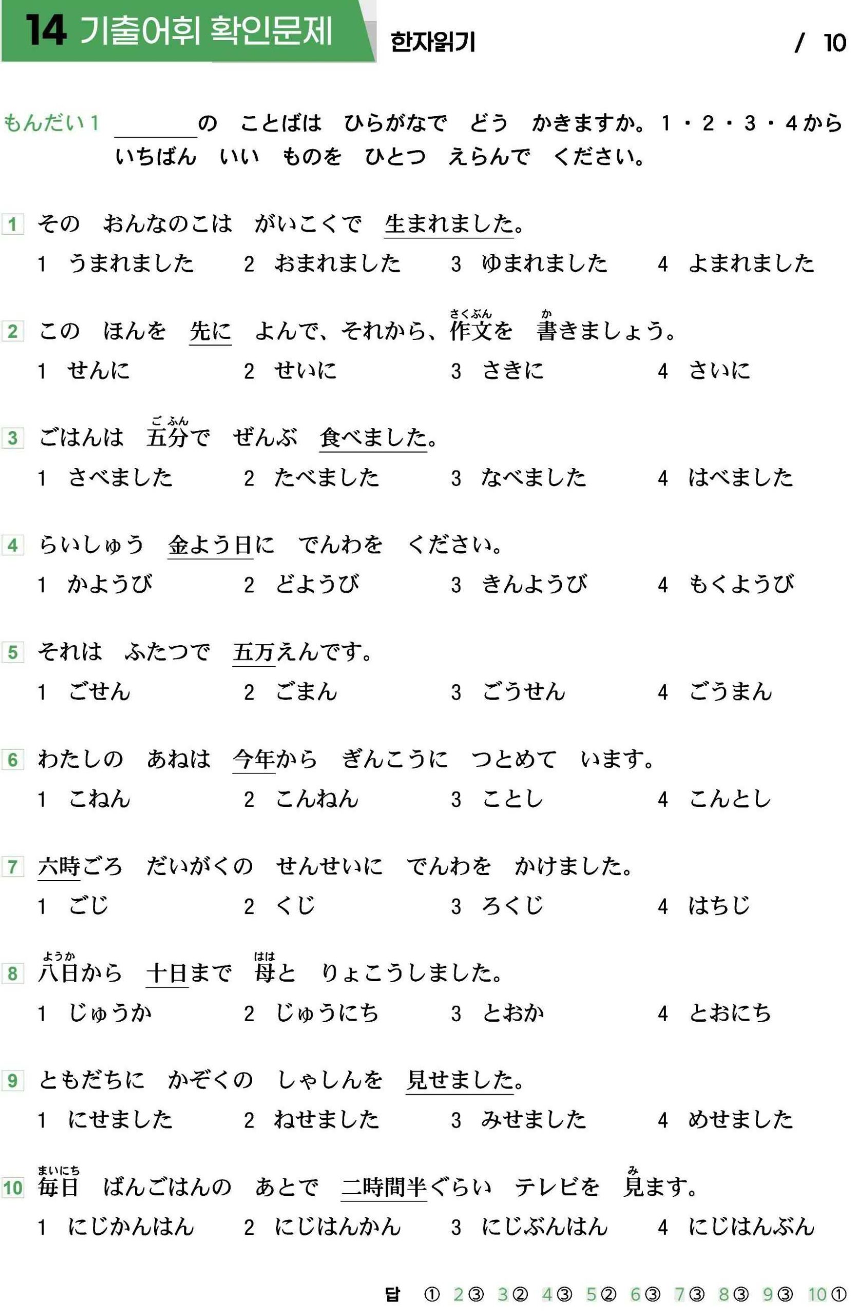 Bài tập Kanji N5: Phần 7 (Có đáp án)