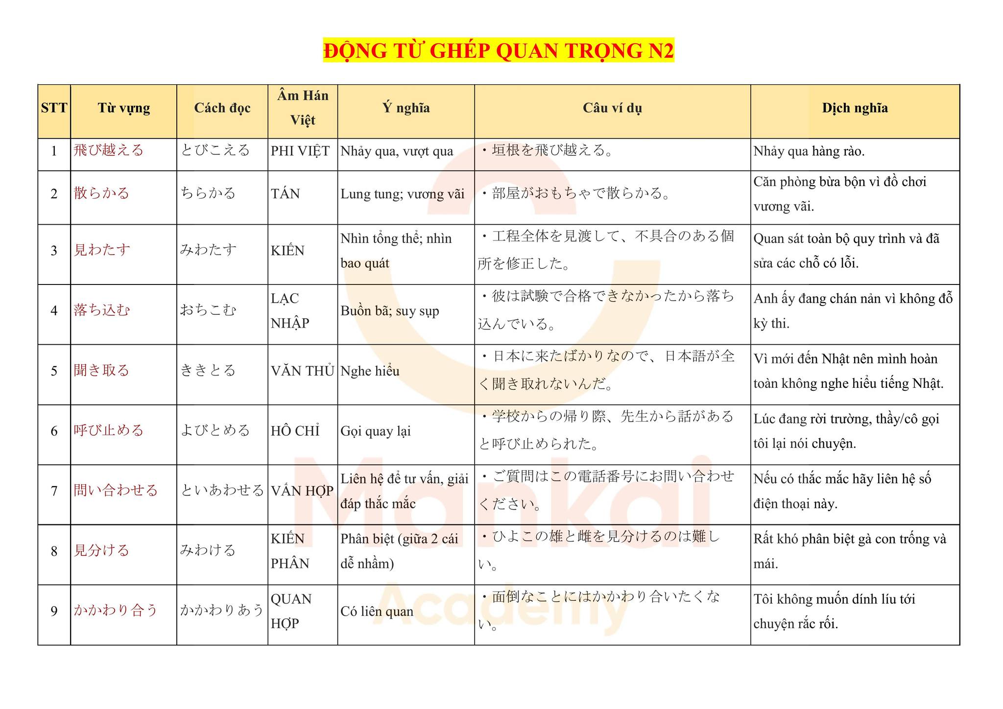 Trong bài này chúng ta sẽ cùng học, 42 Động Từ ghép N2 quan trọng JLPT N2.