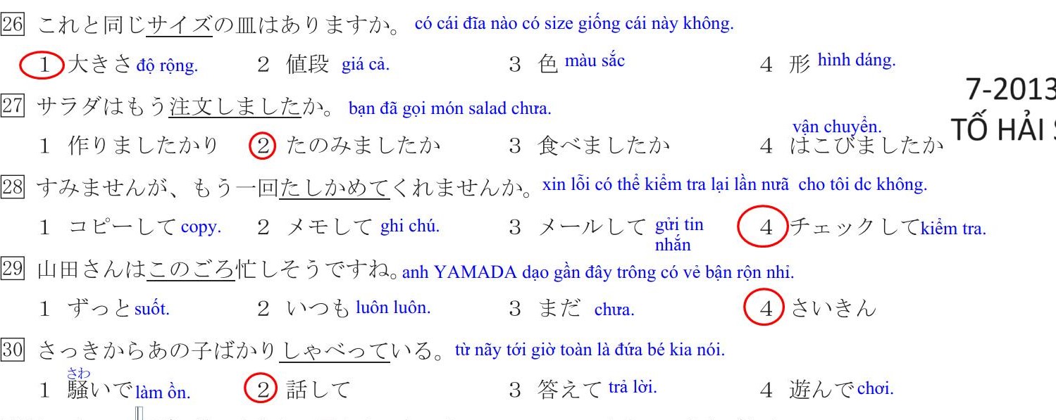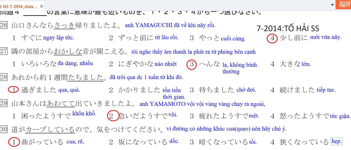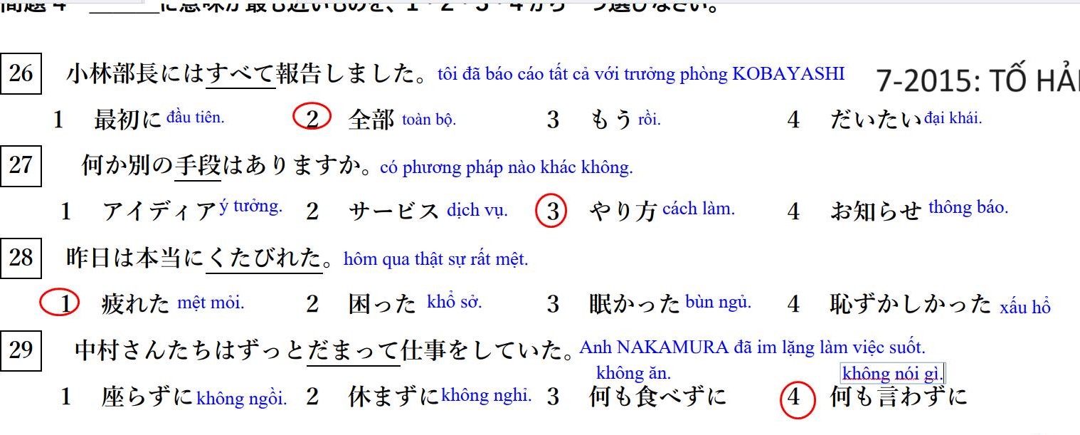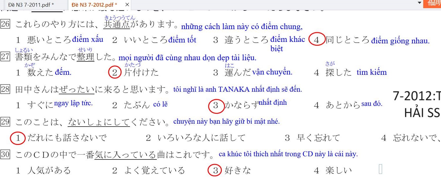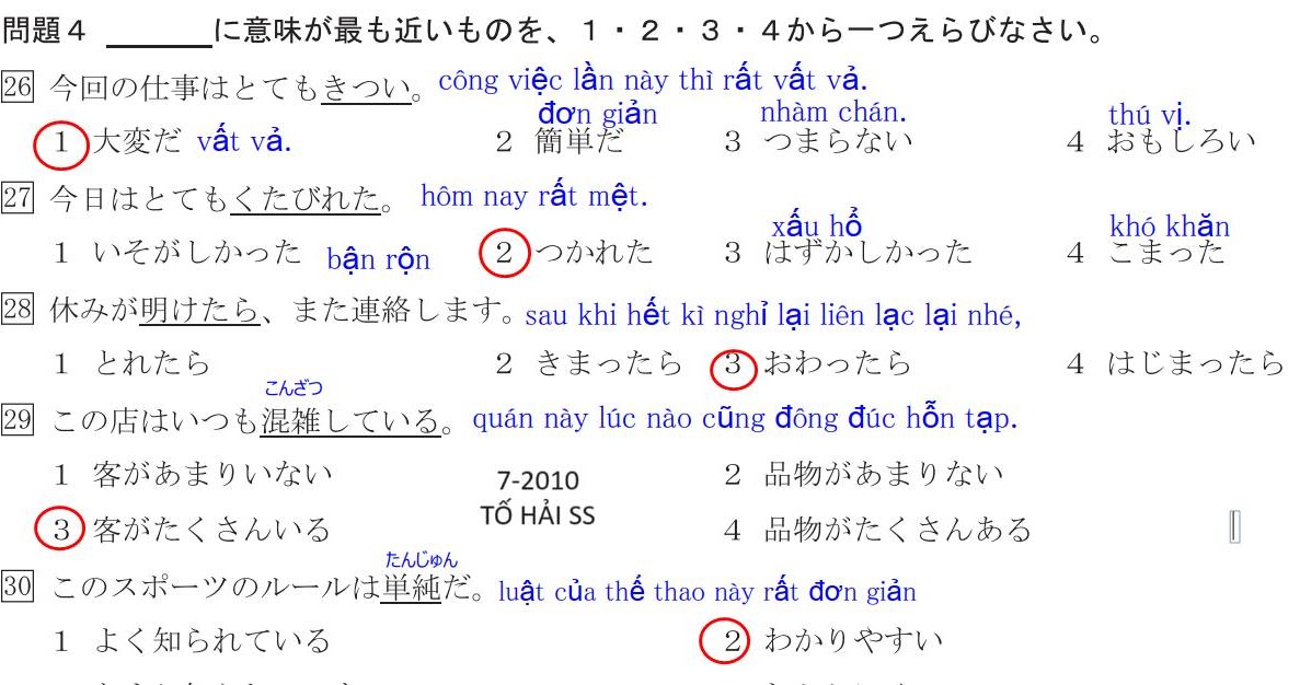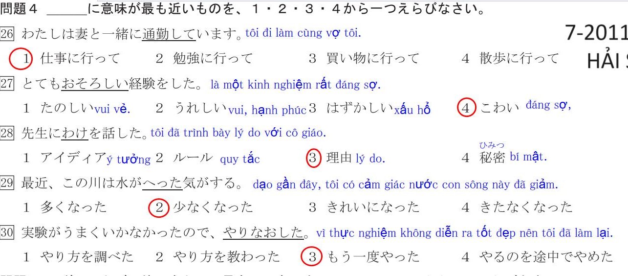 Giải các bài Từ Đồng Nghĩa trích trong JLPT N3 (7/2010-7/2015)