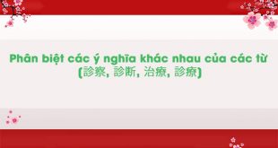 Phân biệt các ý nghĩa khác nhau của các từ [診察, 診断, 治療, 診療] Phân biệt các ý nghĩa khác nhau của các từ 診察 しんさつ, 診断 しんだん, 治療 ちりょう, 診療 しんりょう 【診察・診断・治療・診療】意味の違いを理解する視点 【診察しんさつ:Khám bệnh】医師が患者の病状・病因などをさぐること。Bác sĩ tìm nguyên nhân và tình trạng bệnh của bệnh nhân. 【診断しんだん: Chẩn đoán】医師が患者の病状・病因などを判断すること。Bác sĩ …