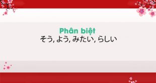 Phân biệt そう (sou), よう (you) , みたい (mitai), らしい (rashii) Chúc bạn học tốt, thi tốt. Trước hết điểm lại cấu trúc nhé: 1. そう そうcó 2 cách dùng phổ biến cơ bản sau: a). V(ます) bỏ ます+そう Tính từ bỏ đuổi い/な+そう -> dường như, sắp. Nghĩa suy …