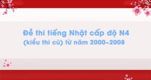 Đề thi tiếng Nhật cấp độ N4 Tổng Hợp Đề Thi Chính Thức Cấp Độ Sankyuu (kiểu thi cũ) tương ứng với cấp độ JLPT N4 (kiểu mới) từ năm 2000~2008. Đề thi có đáp án cho mọi người kiểm tra. Cảm ơn fb.com/bui.yuuki.9 đã chia sẻ. Chúc mọi người …