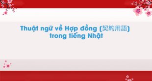 Thuật ngữ về Hợp đồng [契約用語] trong tiếng Nhật 1. 契約[けいやく]: Hợp đồng = Contract 2. 解約[かいやく]: Hủy hợp đồng = Cancellation of contract 3. 解約を申し入れる[かいやくをもうしれる]: Đề nghị hủy hợp đồng = Request for contract cancellation 4. 賃貸借契約[ちんたいしゃくけいやく]: Hơp đồng cho thuê = Lease Contract 5. 売買契約[ばいばいけいやく]: Hợp đồng mua …